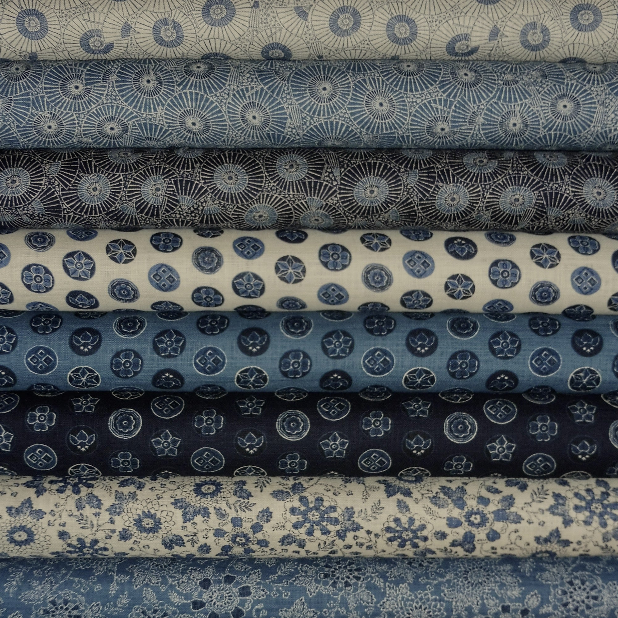 Kallisti Quilts stocks three main categories of cotton fabric from Japan: regular weight quilting prints, textured dobby cloth/plush poplins, and subtle yarn dyes that are a staple in Japanese quilt making.
