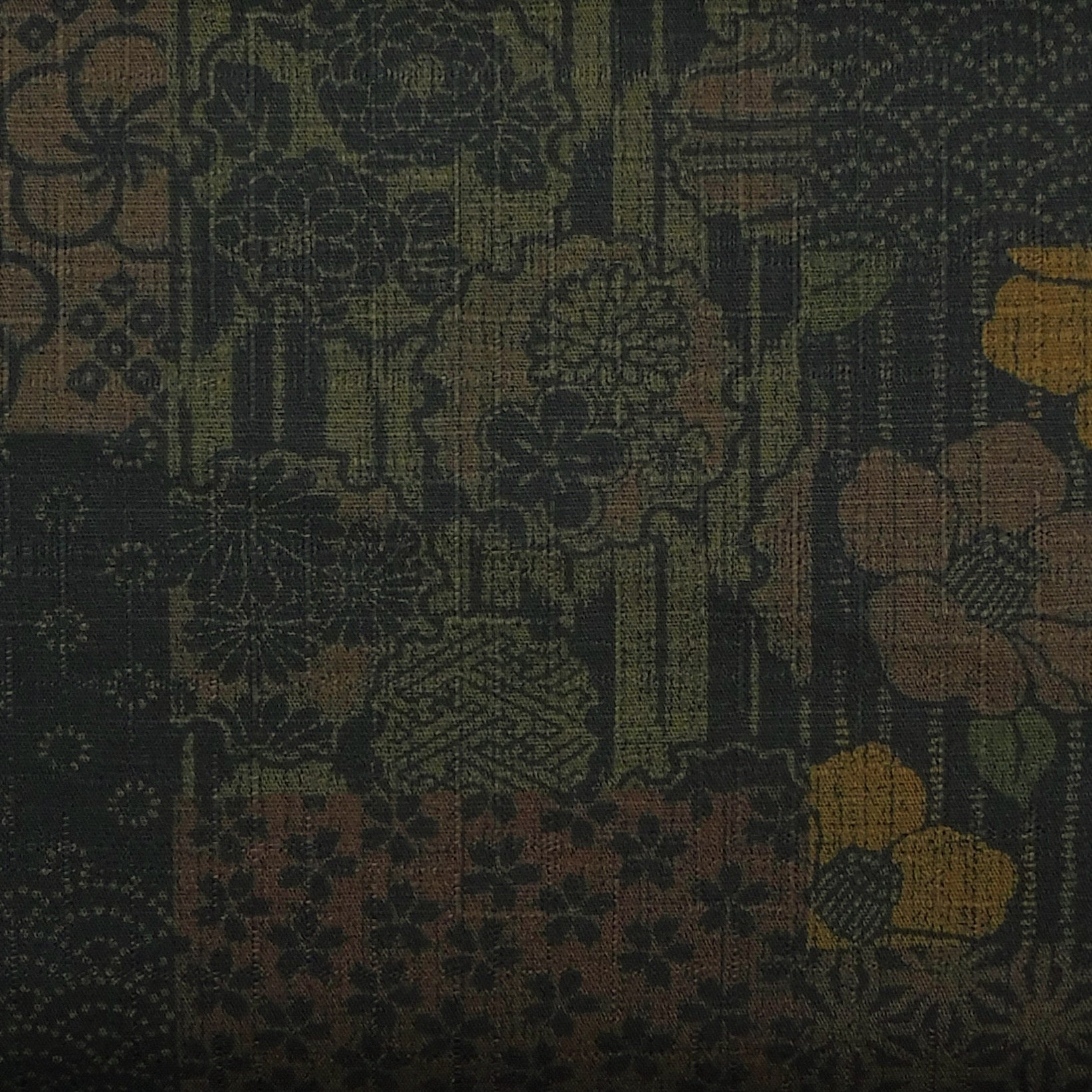 Japanese Dobby Cloth - Black and Green Floral Patchwork
