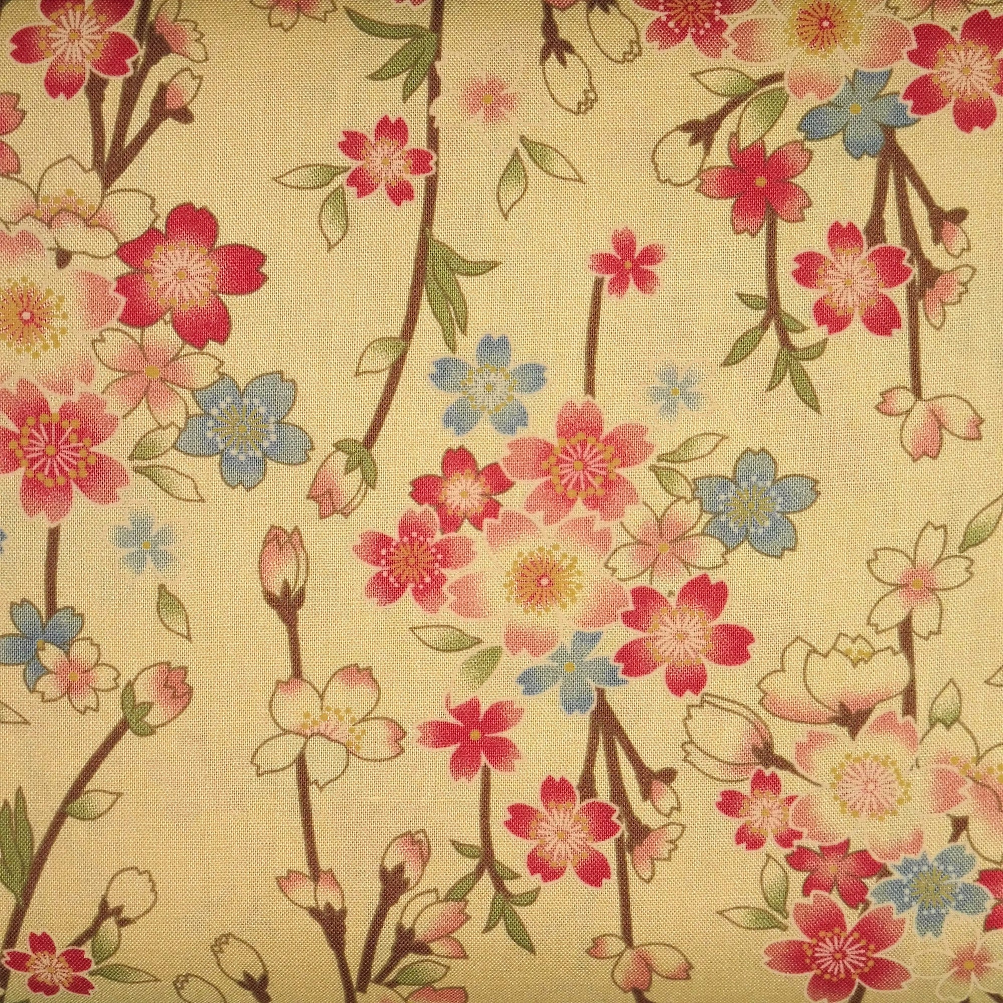 Japanese Quilting Print - Almond Beige Large Cherry Blossom