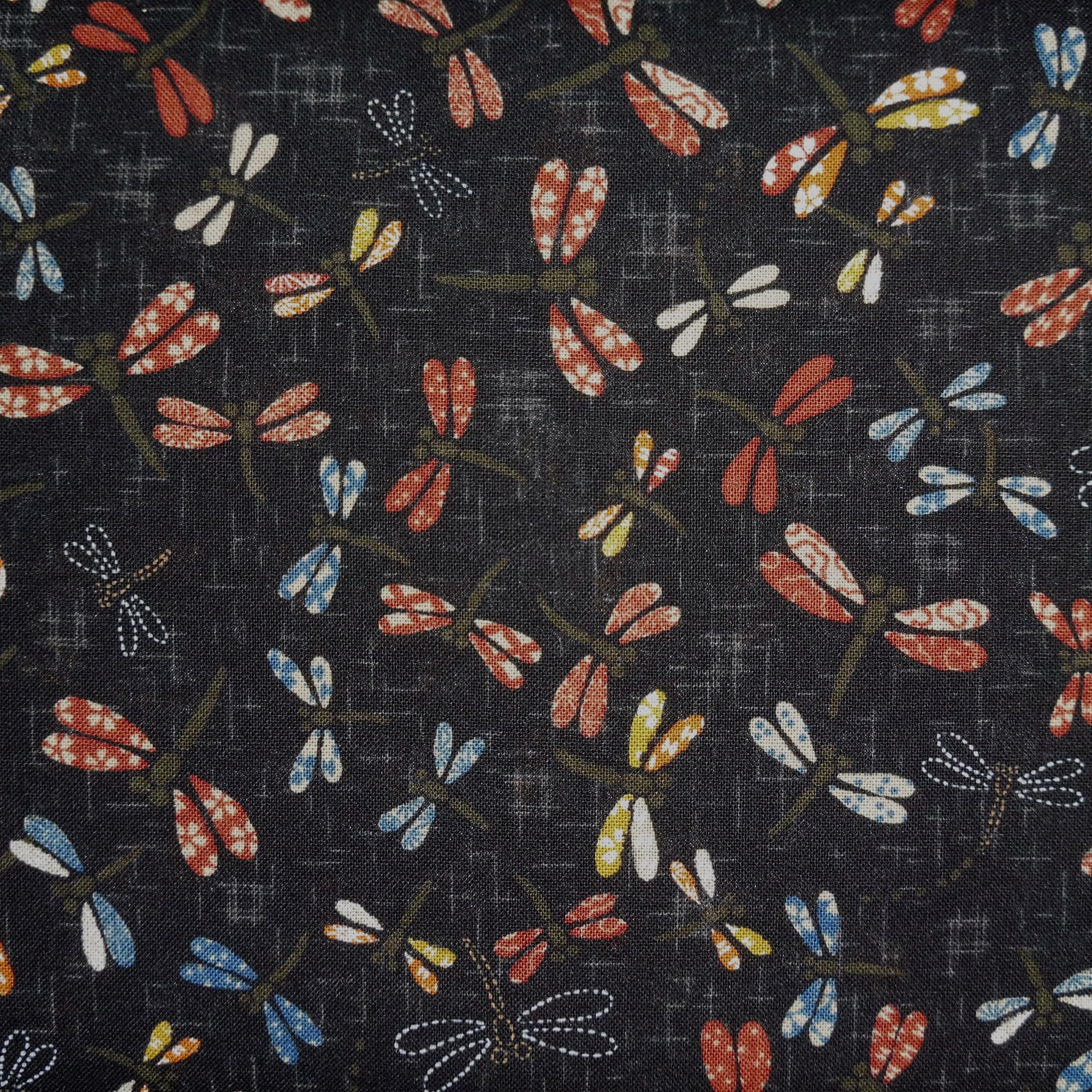 Japanese Quilting Print - Black Dragonfly on Well Curb