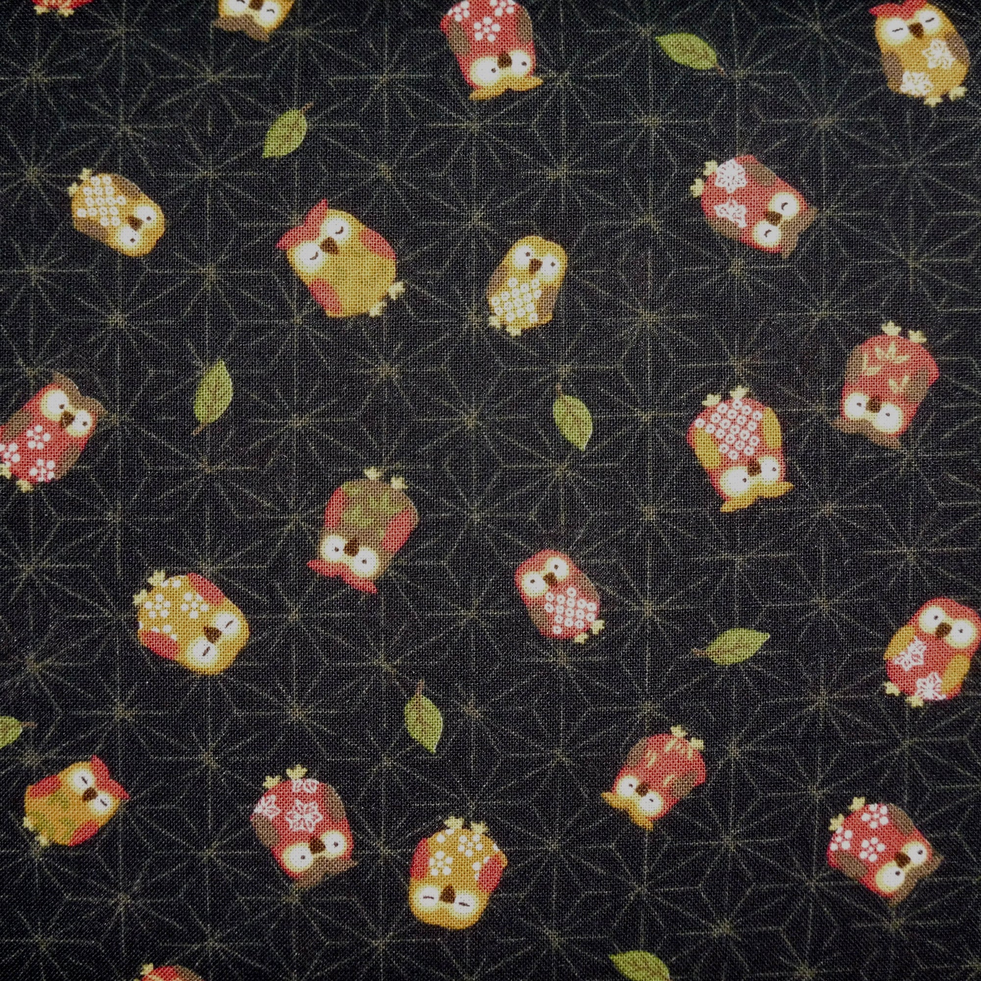 Japanese Quilting Print - Black Owl on Hemp Leaf