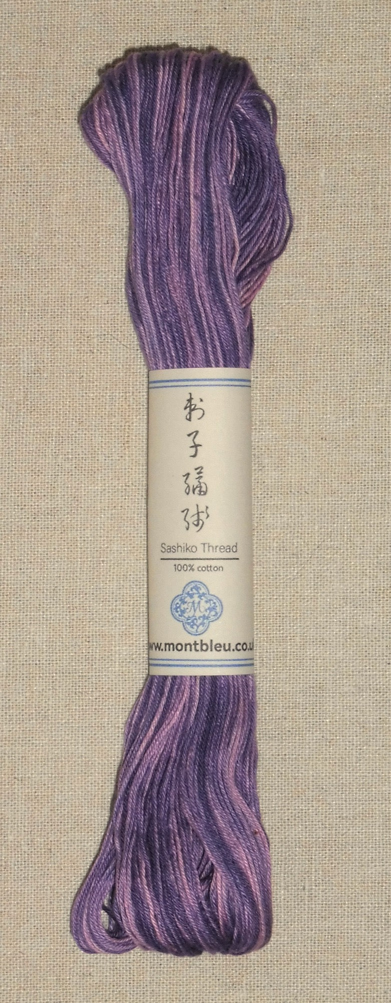 Imported from Mont Bleu of the UK, this is a 50 metre skein of medium weight, hand dyed cotton thread. The medium weight from Mont Bleu is similar to the standard thick Sashiko threads manufactured commercially. Please note that, due to the nature of hand dyeing, variations in skeins should be expected.