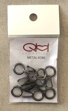 These clips can be used instead of tabs to close a drawstring bag, such as the Japanese rice bag. Each package contains 8 clips meant for one bag. The ring diameter measures 5/16" and the clip measures approximately 7/16" from hinge to tip. Please note that the secondary photo shows the bronze version of the same clips.