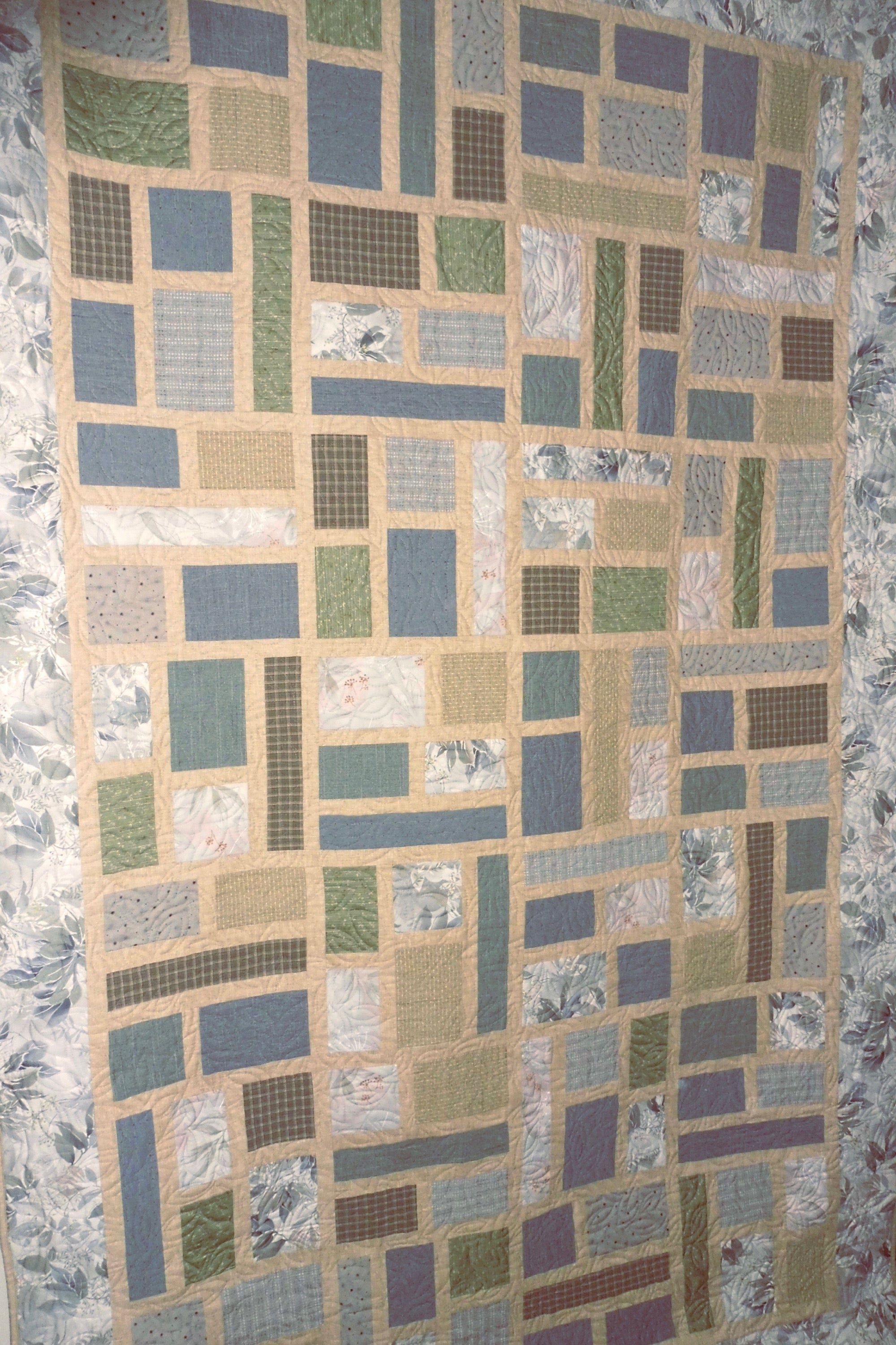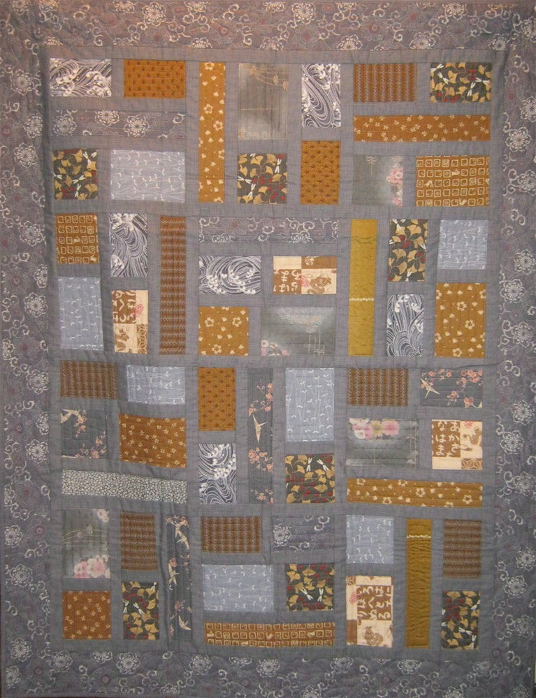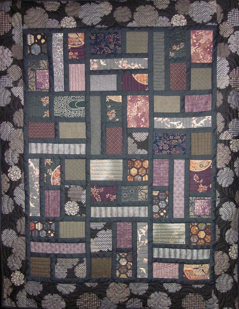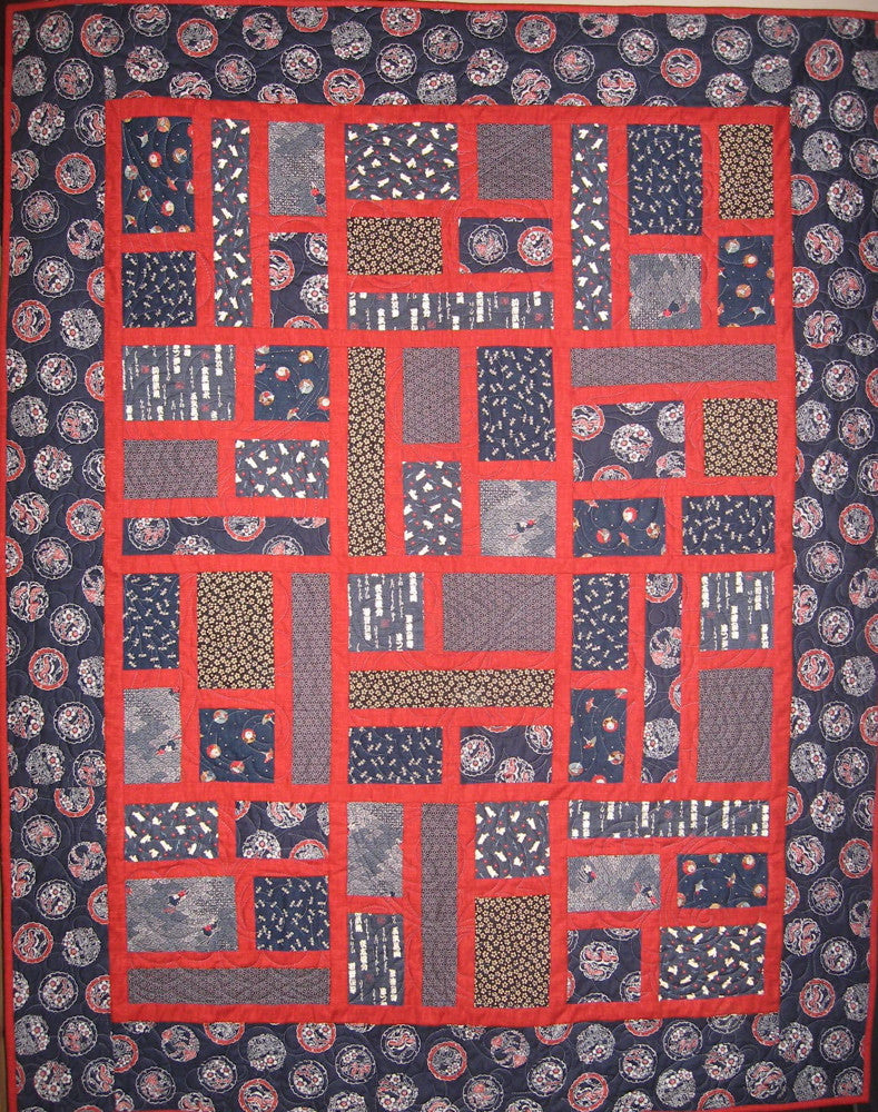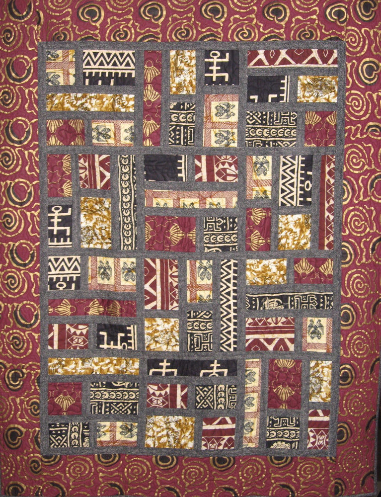 This pattern was designed by Kari Nichols of Mountainpeek Creations. It features a simple configuration of rectangles with sashing that form squares and has the effect of stained glass. This is a terrific pattern for busy and/or large scale prints. By choosing a mediating solid or tone on tone sashing, you can allow all of your prints to pop. This pattern includes five different sizes from lap to King and is appropriate for quilters of all levels.