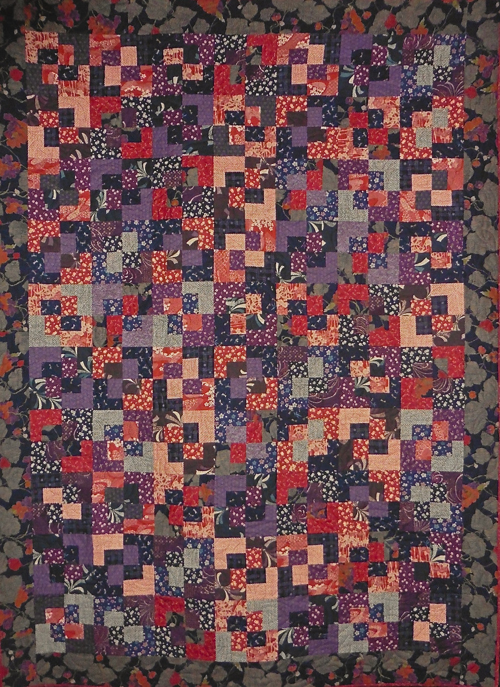 This pattern was designed by Janine Burke of Designs by jb. It features a simple strip pieced design that plays with colour and scale, but requires contrast in one or both categories. The pattern makes a lap quilt measuring 48" x 48," but you can easily adjust the size by making a different number of blocks.