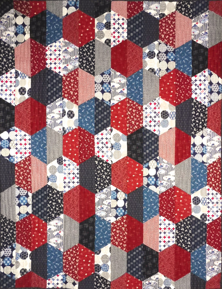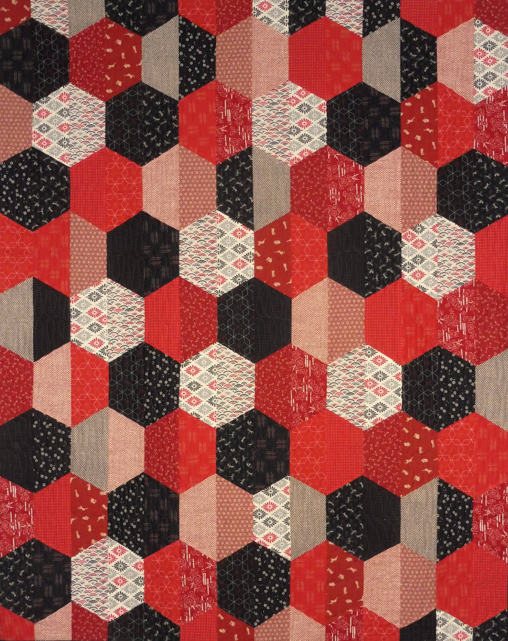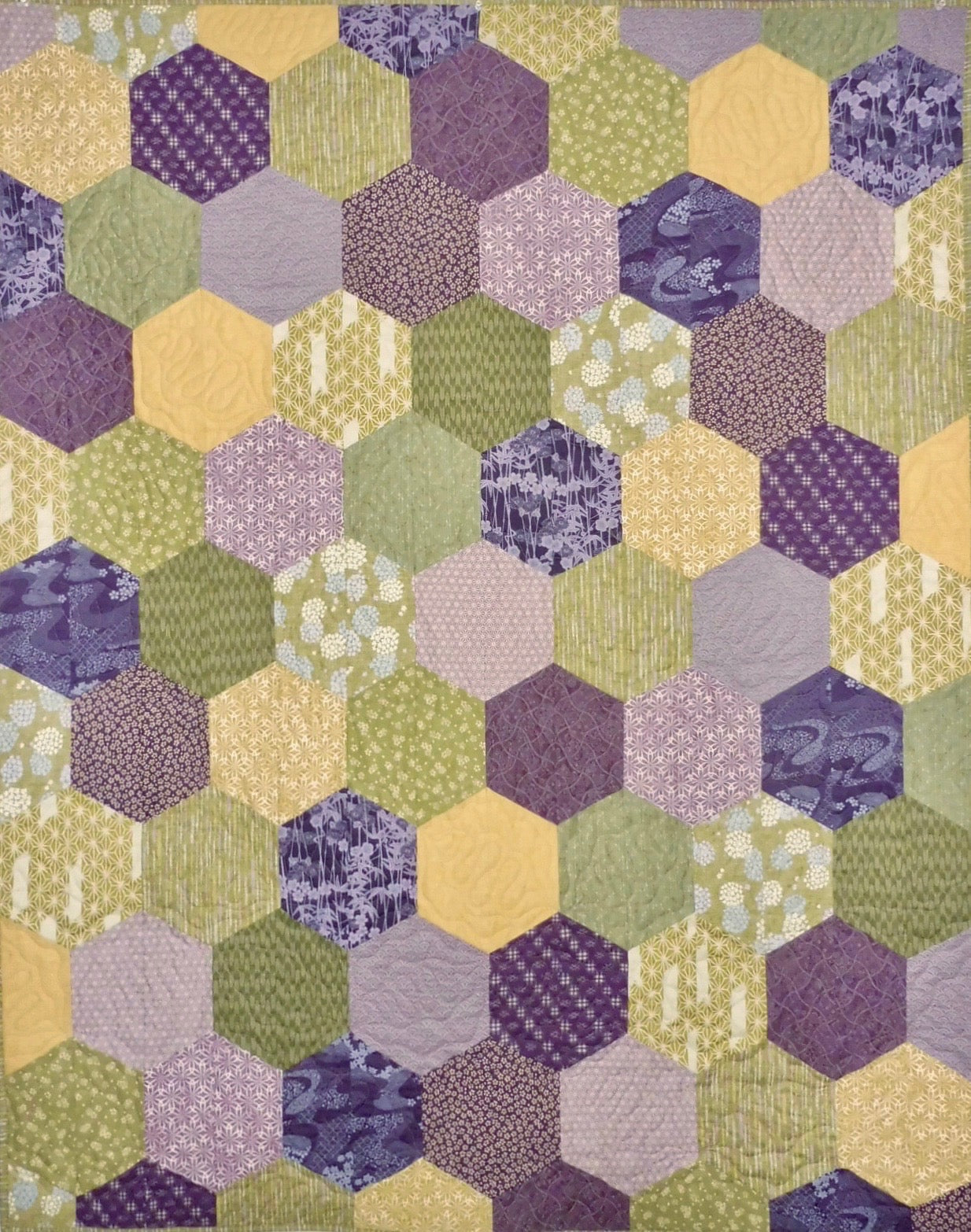 This popular pattern was designed by award winning quilt artist and teacher Johanna Masko of Toronto. It features a simple, oversized half hexagon shape - perfect for the beginner and advanced quilter. This quilt is fast and easy to piece and can be used to showcase large scale prints. It also looks great in homespun or scraps. Updated fabric requirements now offer three sizes: throw, Twin and Queen.