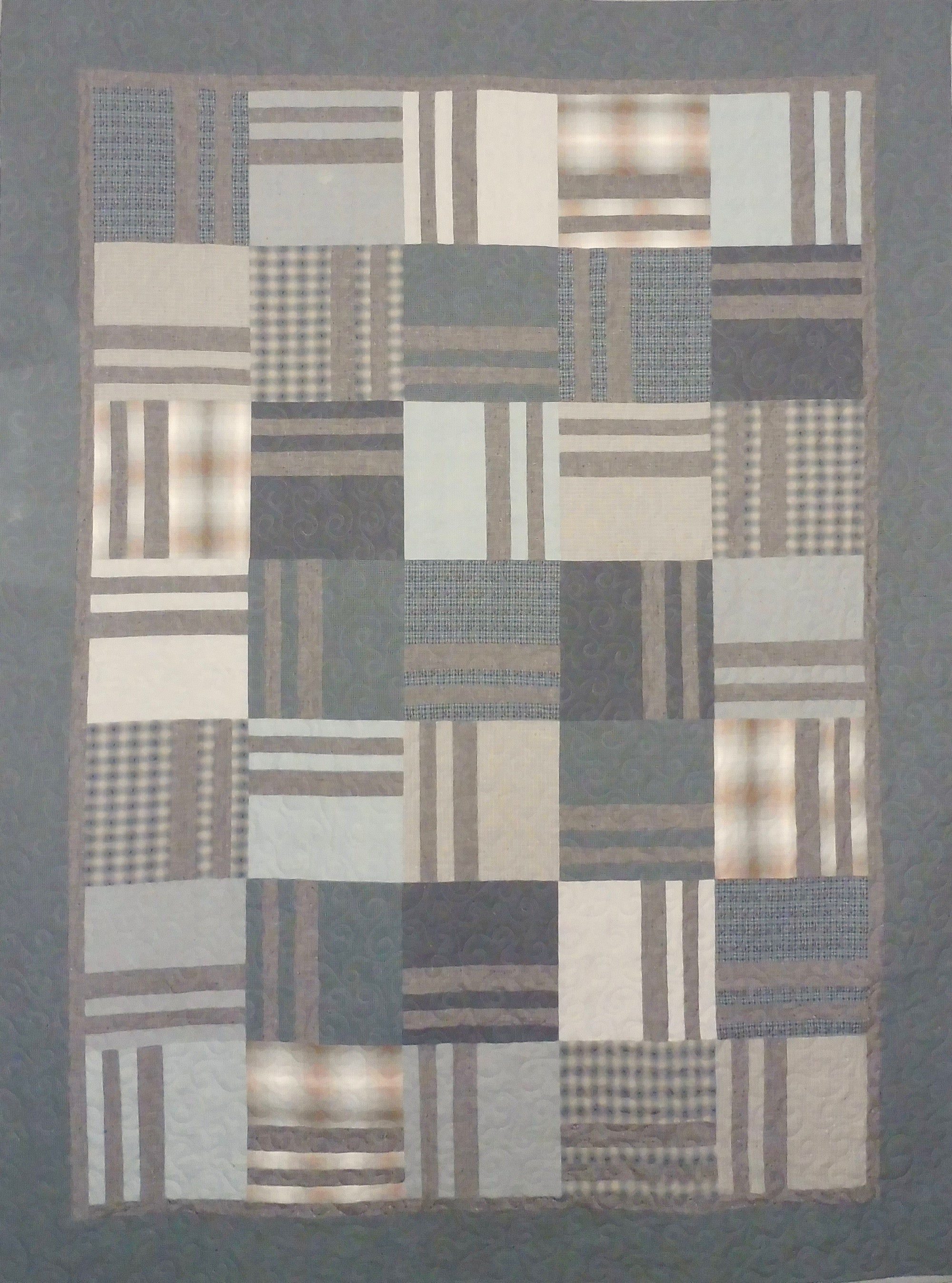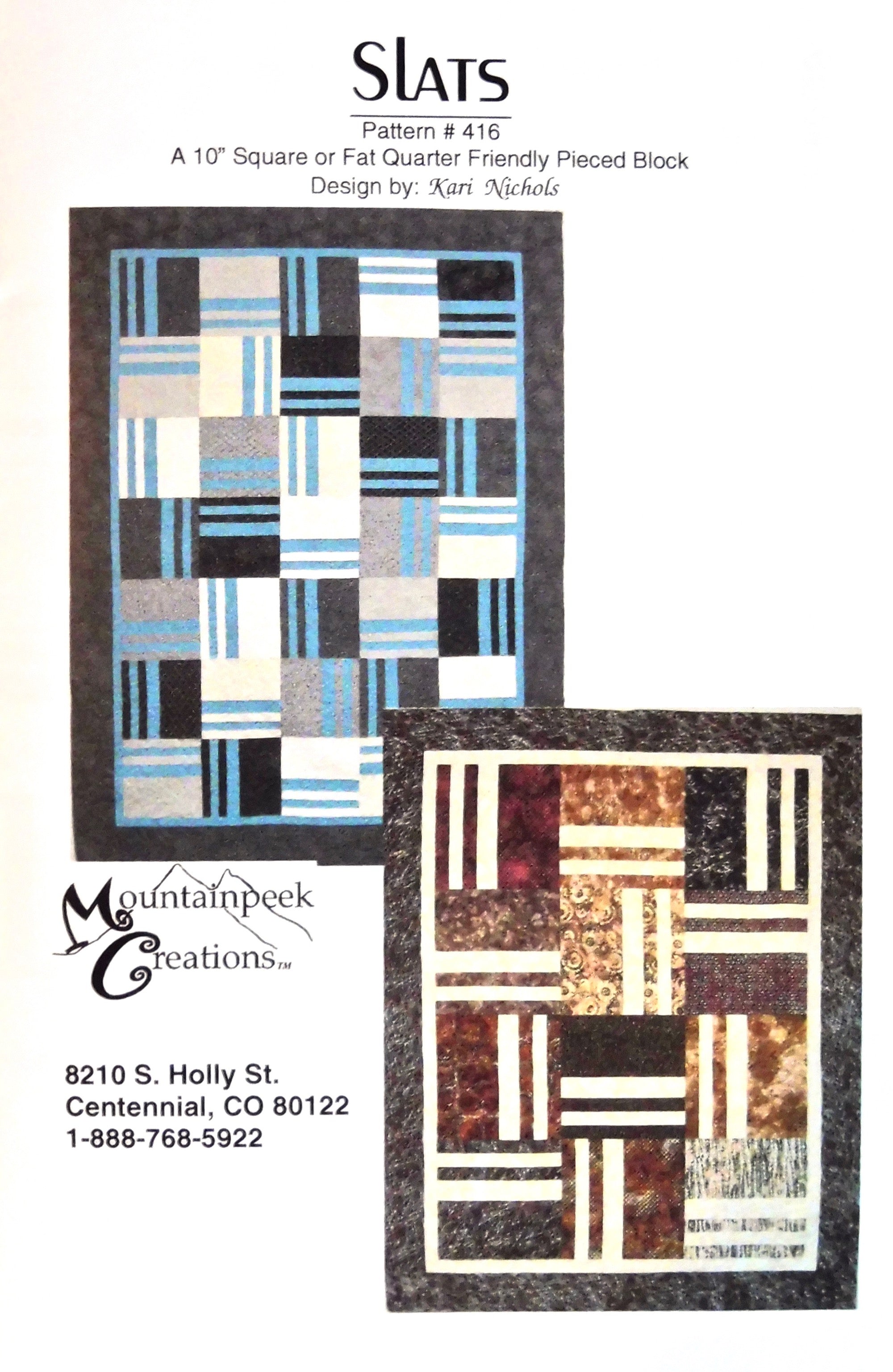This pattern was designed by Kari Nichols of Mountainpeek Creations. It features a square with stripes that can showcase a collection or theme print. For a subtle effect, this pattern also looks terrific in a low contrast, narrow colour palette. This pattern offers two different blocks sizes in three finished quilt sizes.