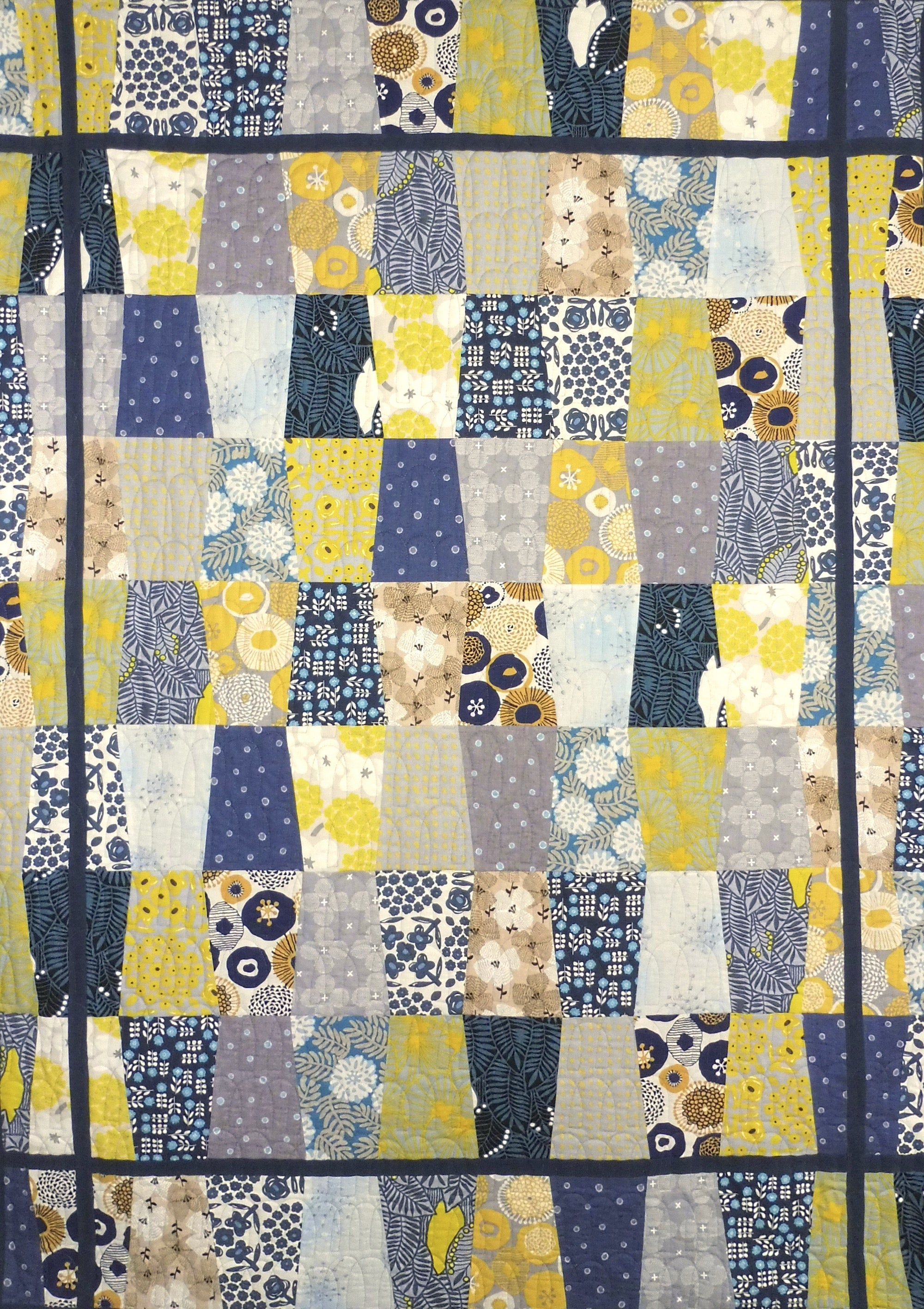 This very popular pattern was designed by award winning quilt artist and teacher Johanna Masko of Toronto. It features a simple, oversized trapezoid shape - perfect for the beginner and advanced quilter. This quilt works well for any fabric collection, but especially for large scale prints. Fabric requirements will produce a large throw, Twin or Queen bed, but you can easily adjust the size. Additional photos show a few different versions of Trapezoids made by Kallisti Quilts over recent years.