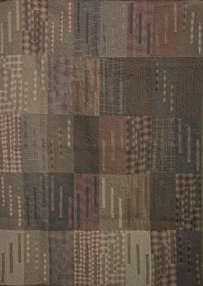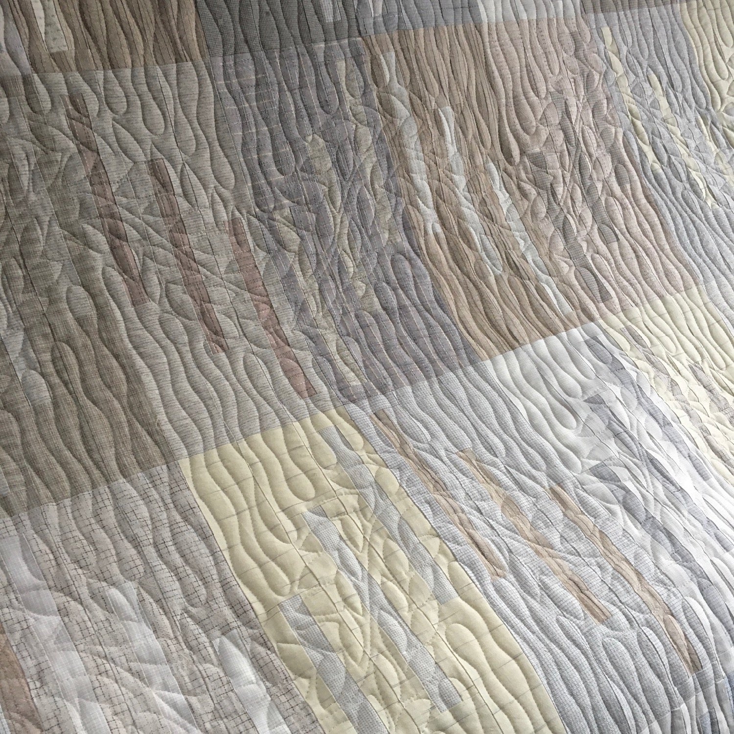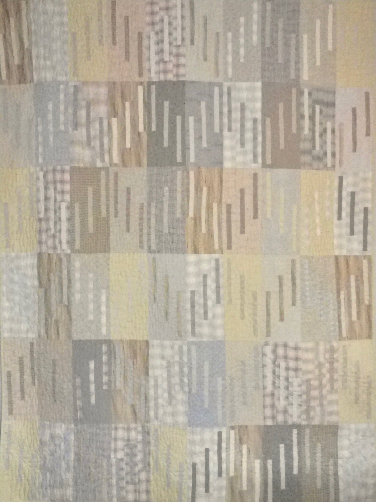 The additional photos show two versions of Whisper made with Japanese yarn dyed fabrics, the first one in dark grey and brown and the second quilt in cream and beige.