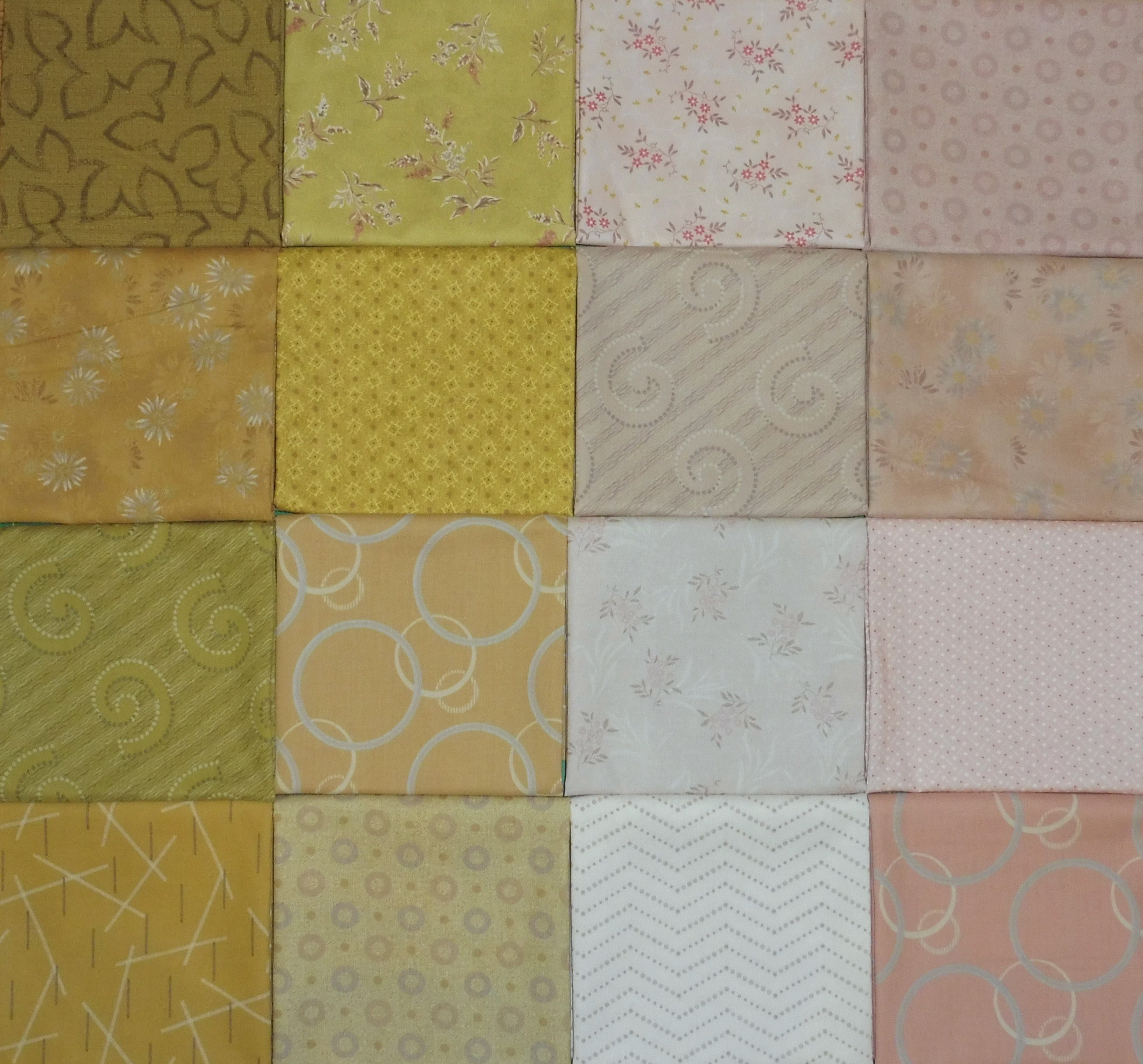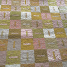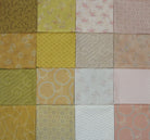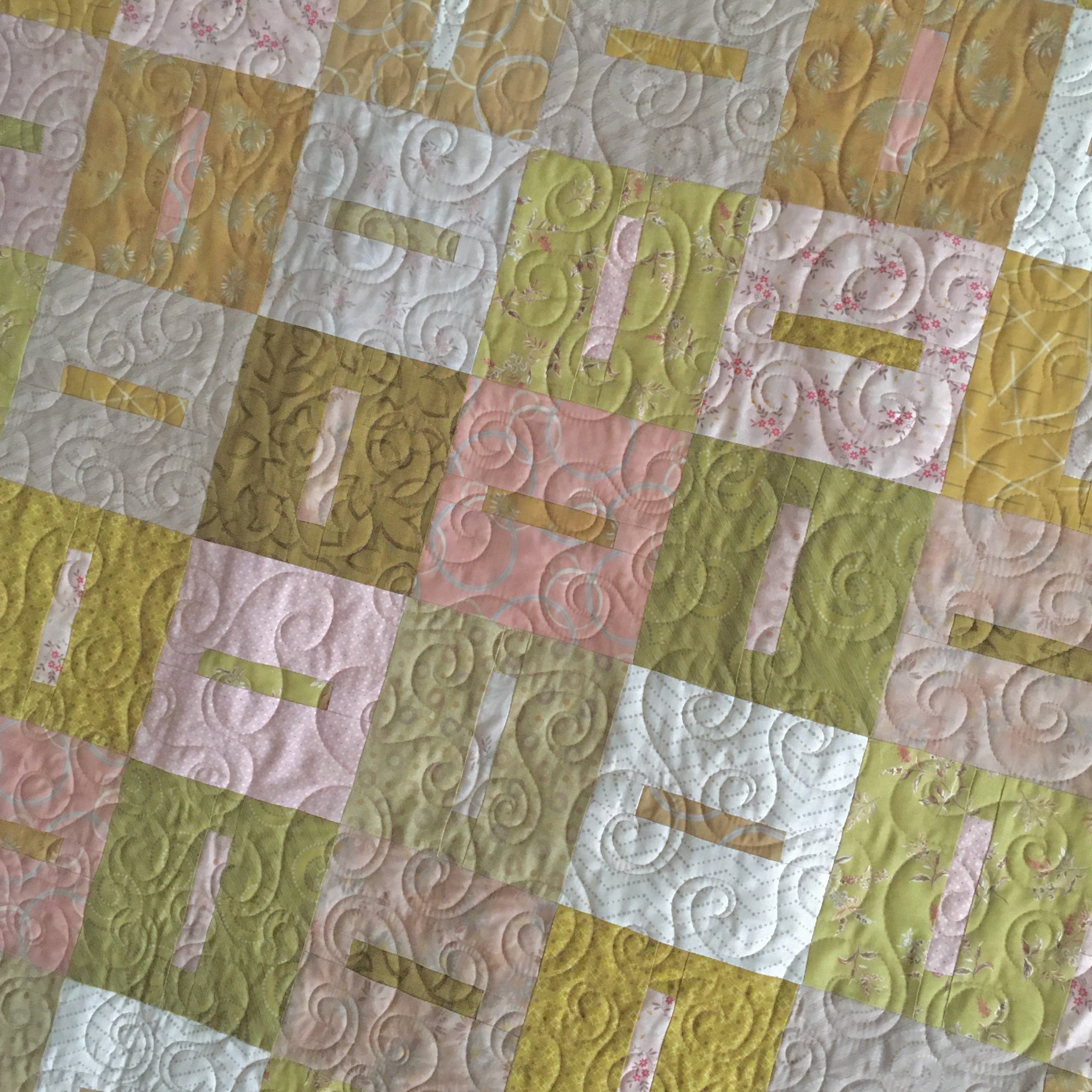 Kallisti's new weird and wonderful Feng Shui quilt features 16 different rose and gold quilting fabrics from the Japanese Blender Print collection.  This best selling pattern by Janine Burke of Designs is available for purchase separately.  This quilt finishes approximately 56" wide x 74" long, which is appropriate for a throw quilt.  Details of the machine quilting can be seen in the close up photos.