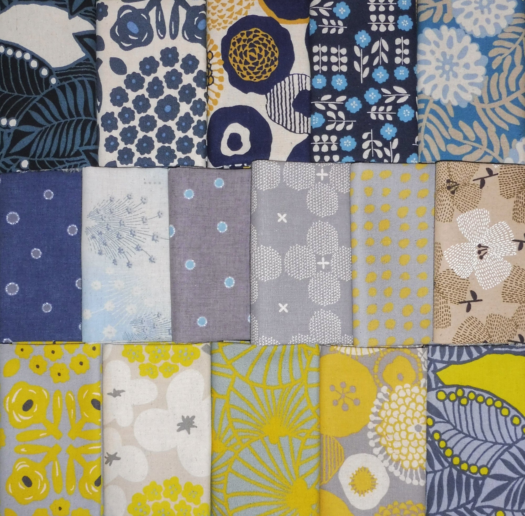 Kallisti's latest Trapezoids features modern Japanese linen prints in a striking combination of blue, grey and yellow. The pattern was designed by Johanna Masko, a quilting instructor and award winning artist, and can be purchased separately. The quilt measures approximately 52.5" x 72.5" which is appropriate for a throw quilt.