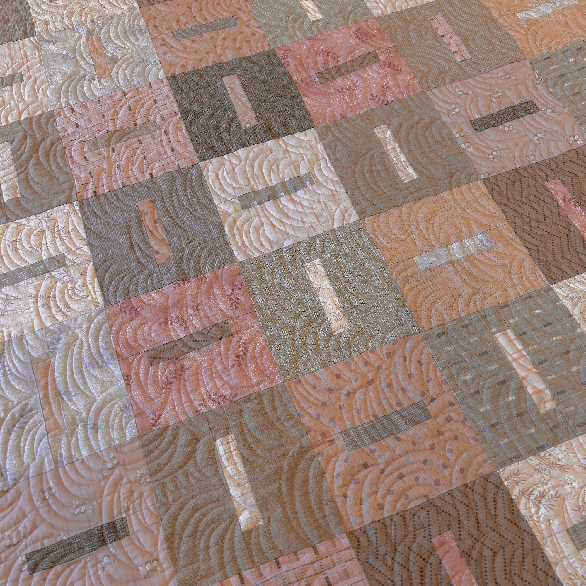 Kallisti's new version of Feng Shui features Japanese blender prints and yarn dyes in soft pink and tan. The pattern was designed by Janine Burke of Designs by jb and the pattern is available for purchase separately, as is the fabric bundle. The quilt measures approximately 58" x 74," which is appropriate for a throw. Kit includes 16 fat quarters, 0.5 metres for binding plus pattern.