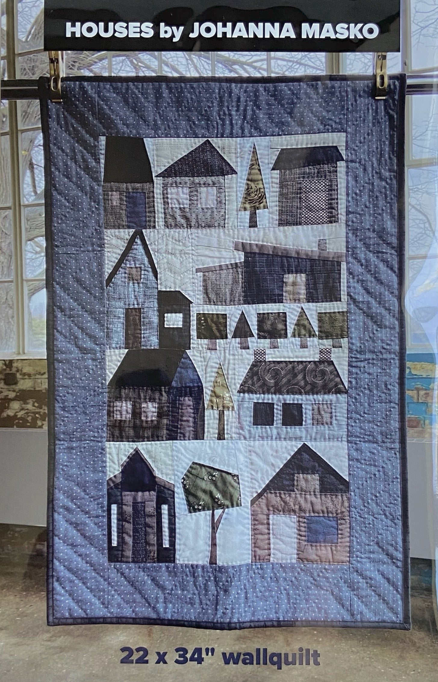 This fun pattern is designed by award winning quilt artist and teacher Johanna Masko of Toronto. It features a foundation pieced village scene of whimsical buildings and trees in a bold frame. Wall hanging finishes approximately 23" wide by 35" long. The kit includes the all of the many small pieces of fabric seen in Kallisti's new warm-toned version, border and binding, but NO pattern. This listing is for people who have previously purchased the pattern. If you need the pattern, please purchase this listing: