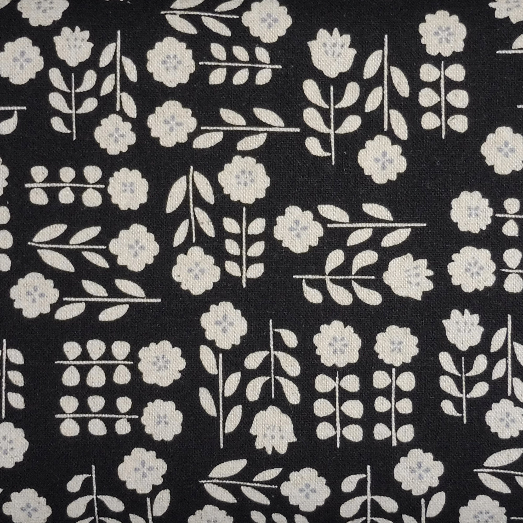 Japanese Cotton/Linen Blend - Black Row Flowers