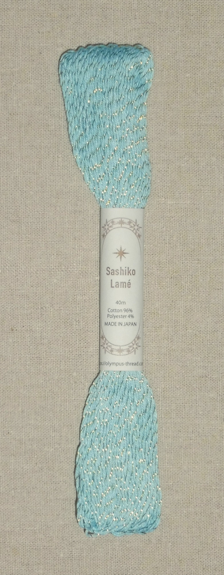 Imported from Olympus of Japan, this is a 40 metre skein of thin cotton thread wrapped in a single delicate strand of metallic silver.