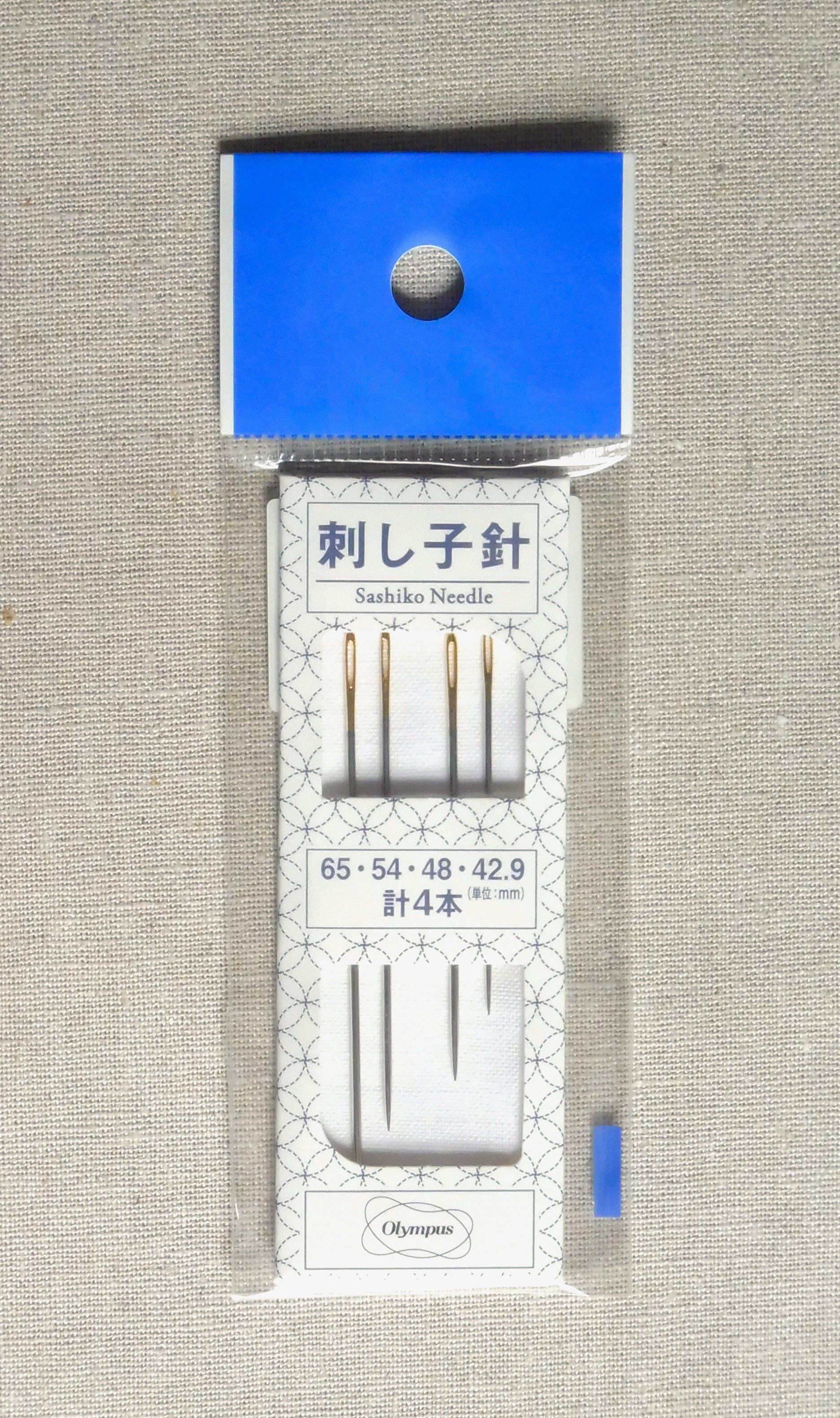 Imported from Olympus of Japan, this is a package of four sashiko needles with elongated eyes for easy threading. The extra long needles can also be used for heavier fabrics, straight stitching and doll making.
