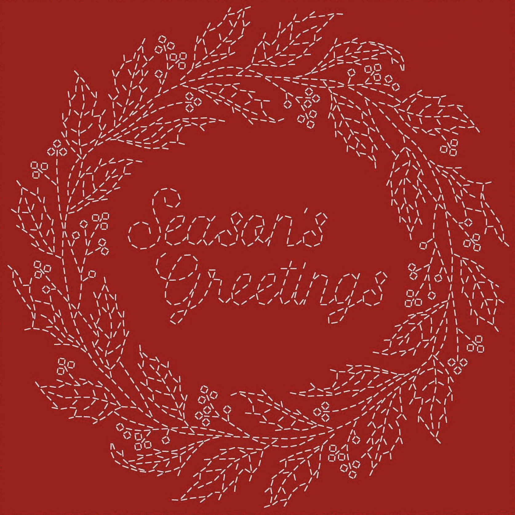 This preprinted Japanese Sashiko fabric features a seasonal wreath in red. This panel is 100% cotton and measures approximately 12" wide x 12" long. Stitch on stamped, water soluble lines with Sashiko thread. You may need up to 20 metres of thread.