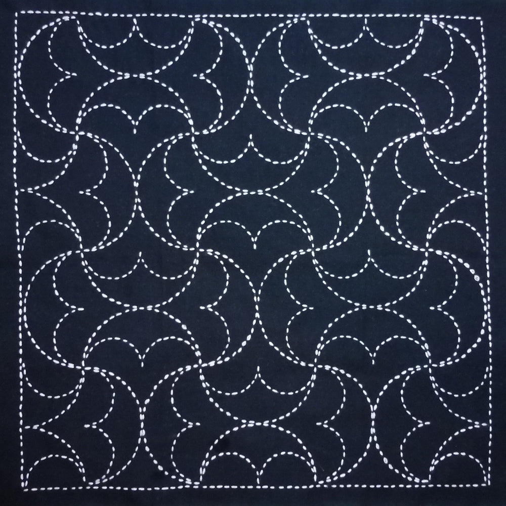 Sashiko Fabric - Panel #2038 Tsunagi (linked semicircles)