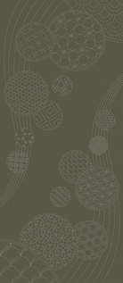 This preprinted Japanese sashiko fabric features decorative orbs swaying in the breeze. This grey-green panel is 100% cotton and measures approximately 18" wide x 45" long.  Stitch on stamped lines with sashiko thread, embroidery floss or pearl cotton. Stamped lines dissolve in water.