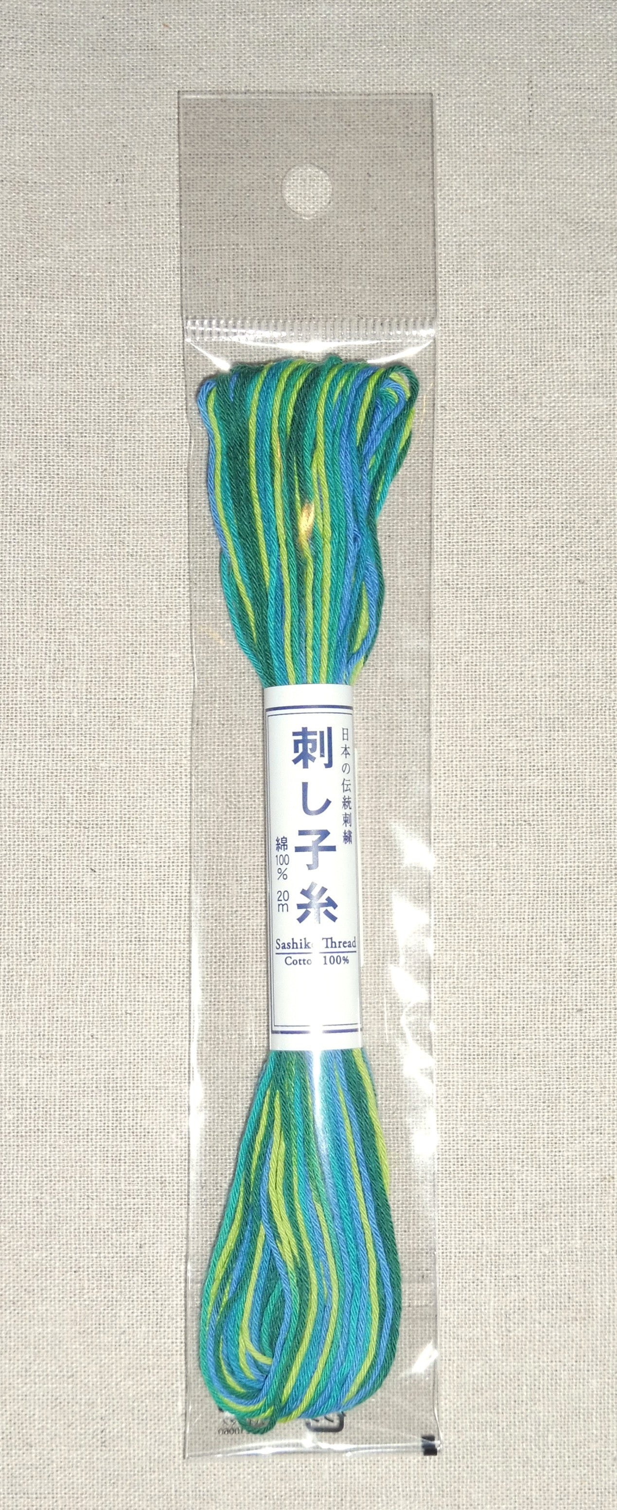 Sashiko Thread - 20 m. of Thick Variegated Green and Turquoise