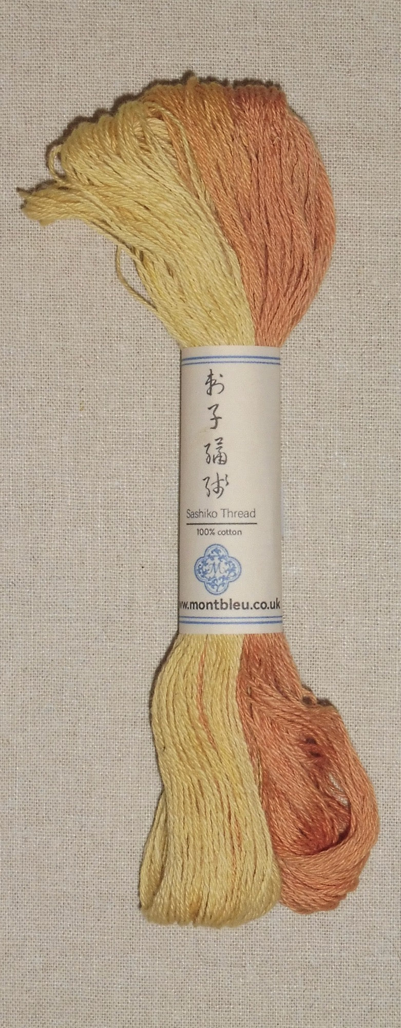 Imported from Mont Bleu of the UK, this is a 50 metre skein of medium weight, plant dyed cotton thread. The medium weight from Mont Bleu is similar to the standard thick Sashiko threads manufactured commercially. Please note that, due to the nature of hand dyeing, variations in skeins should be expected.