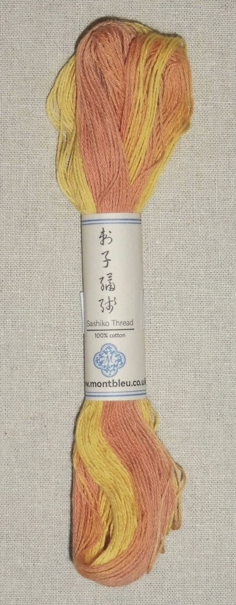 Imported from Mont Bleu of the UK, this is a 50 metre skein of medium weight, plant dyed cotton thread. The medium weight from Mont Bleu is similar to the standard thick Sashiko threads manufactured commercially. Please note that, due to the nature of hand dyeing, variations in skeins should be expected.