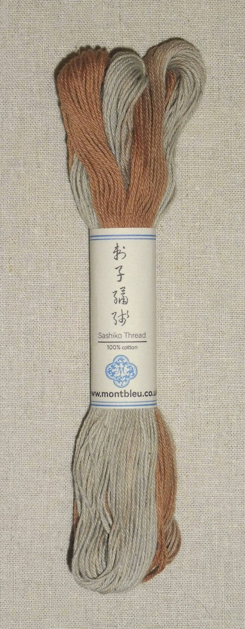 Imported from Mont Bleu of the UK, this is a 50 metre skein of medium weight, plant dyed cotton thread. The medium weight from Mont Bleu is similar to the standard thick Sashiko threads manufactured commercially. Please note that, due to the nature of hand dyeing, variations in skeins should be expected.