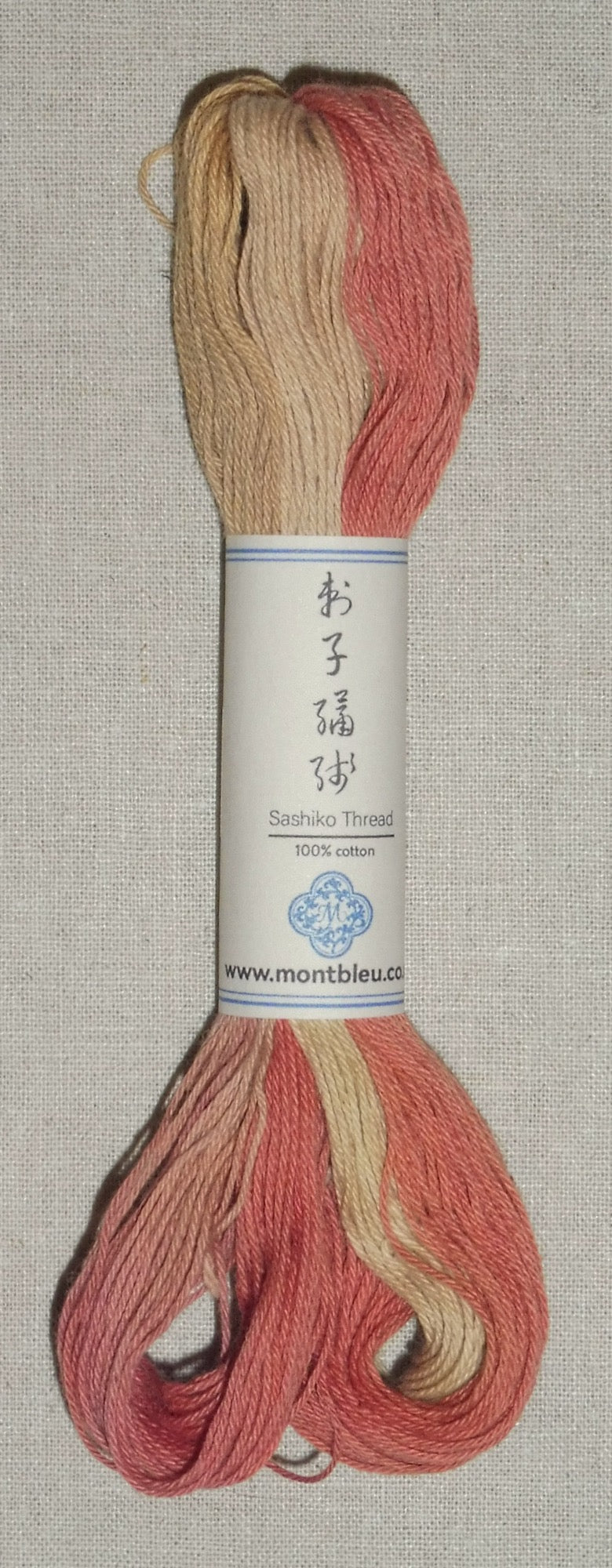 Imported from Mont Bleu of the UK, this is a 50 metre skein of medium weight, plant dyed cotton thread. The medium weight from Mont Bleu is similar to the standard thick Sashiko threads manufactured commercially. Please note that, due to the nature of hand dyeing, variations in skeins should be expected.