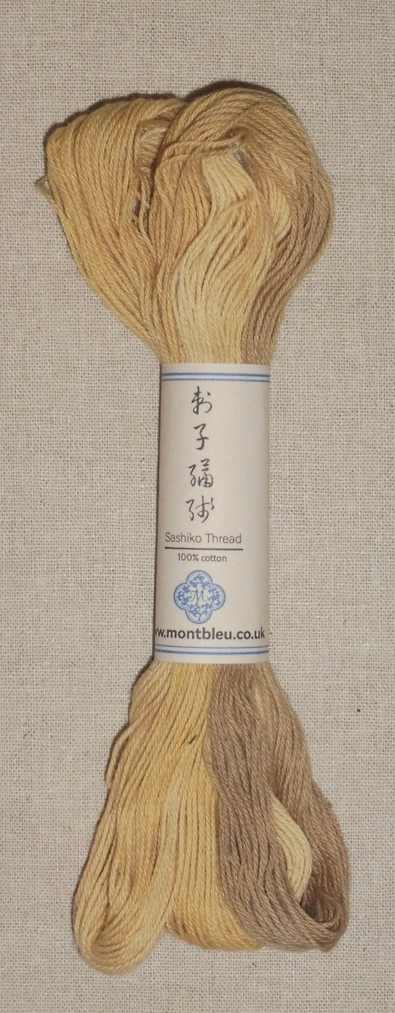 Imported from Mont Bleu of the UK, this is a 50 metre skein of medium weight, plant dyed cotton thread. The medium weight from Mont Bleu is similar to the standard thick Sashiko threads manufactured commercially. Please note that, due to the nature of hand dyeing, variations in skeins should be expected.