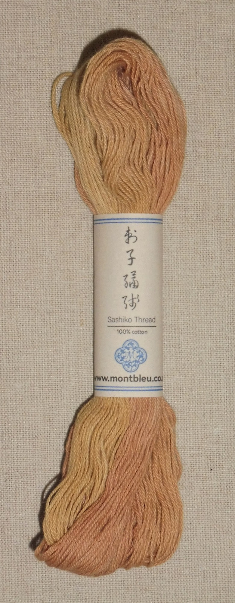 Imported from Mont Bleu of the UK, this is a 50 metre skein of medium weight, plant dyed cotton thread. The medium weight from Mont Bleu is similar to the standard thick Sashiko threads manufactured commercially. Please note that, due to the nature of hand dyeing, variations in skeins should be expected.