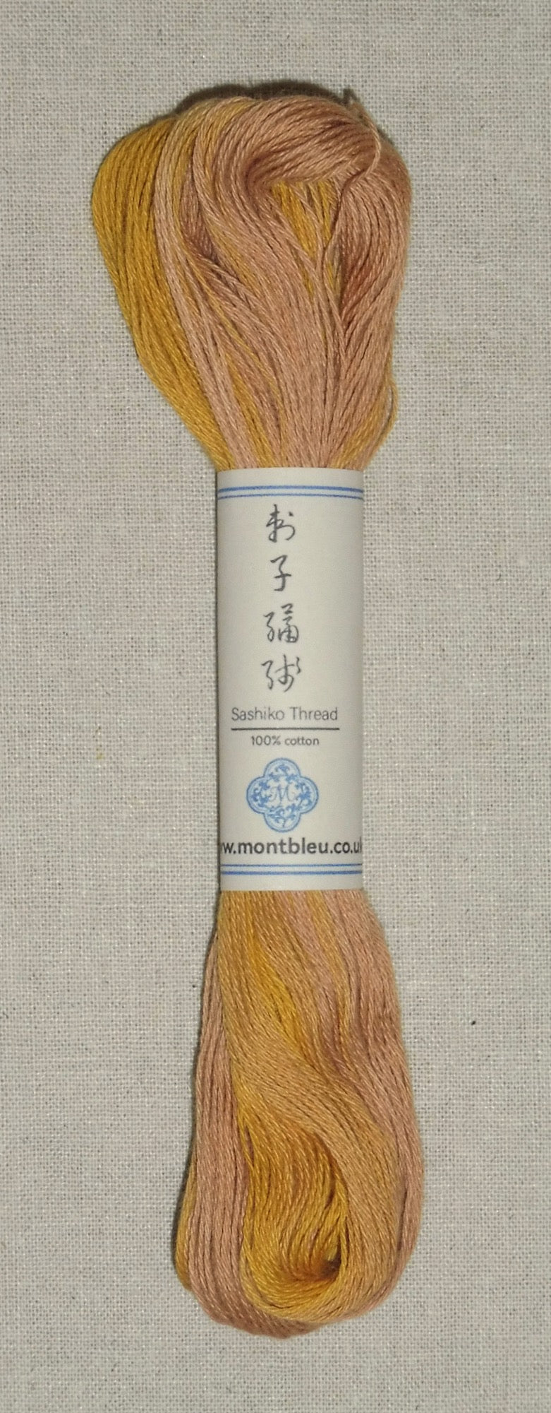 Imported from Mont Bleu of the UK, this is a 50 metre skein of medium weight, plant dyed cotton thread. The medium weight from Mont Bleu is similar to the standard thick Sashiko threads manufactured commercially. Please note that, due to the nature of hand dyeing, variations in skeins should be expected.