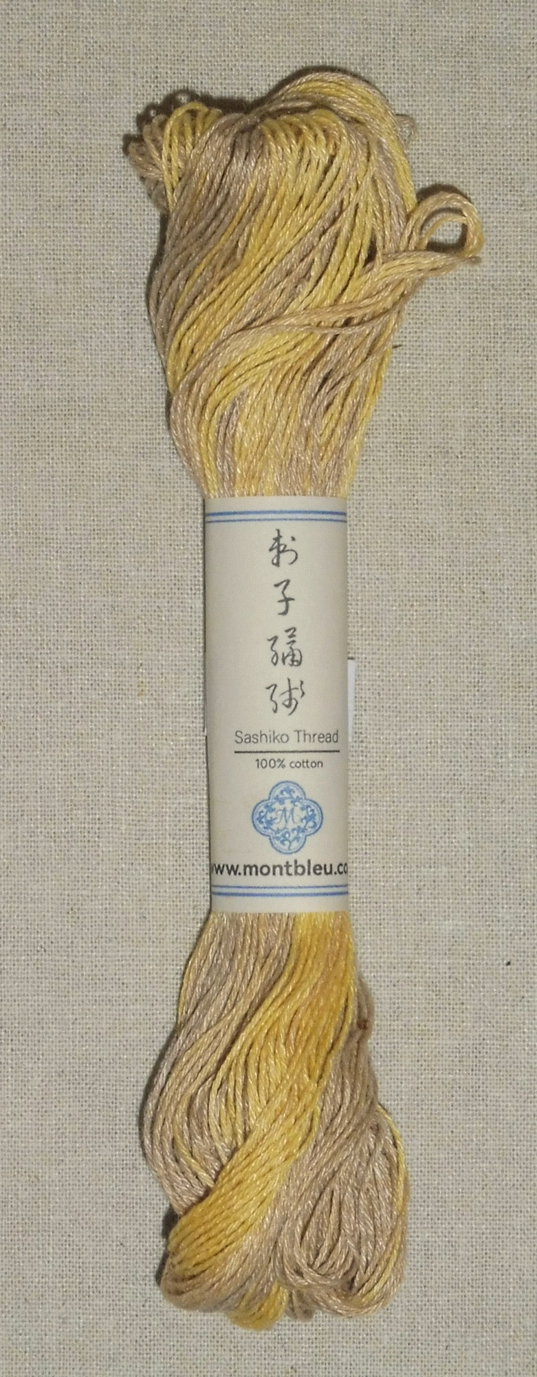 Imported from Mont Bleu of the UK, this is a 50 metre skein of medium weight, plant dyed cotton thread. The medium weight from Mont Bleu is similar to the standard thick Sashiko threads manufactured commercially. Please note that, due to the nature of hand dyeing, variations in skeins should be expected.
