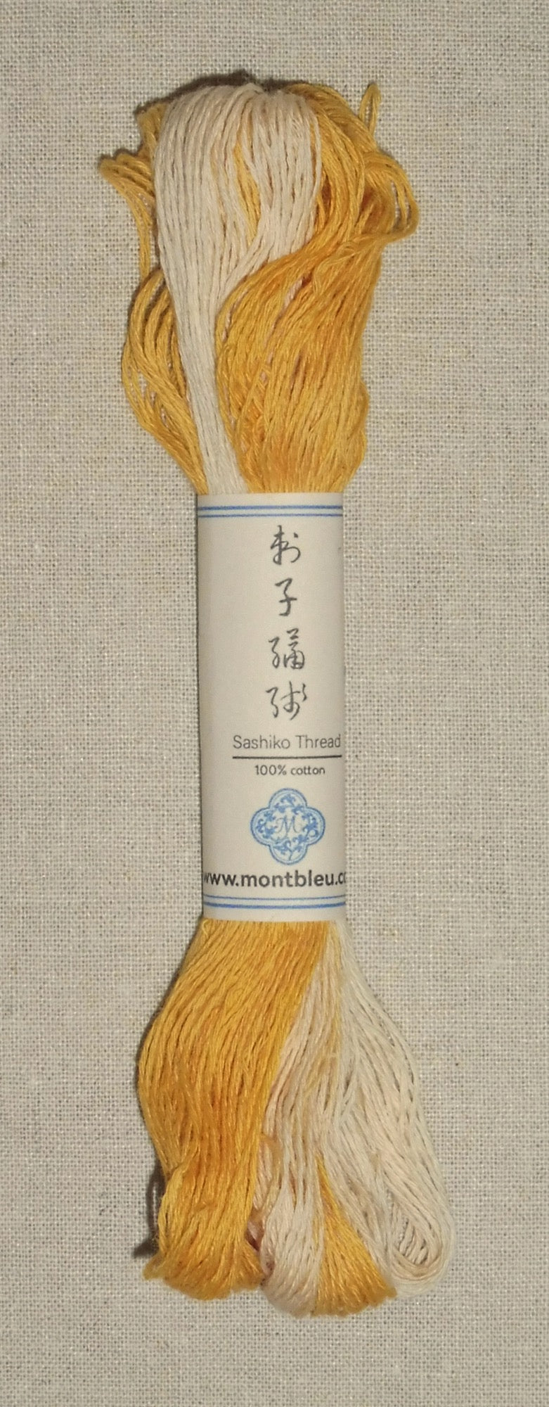 Imported from Mont Bleu of the UK, this is a 50 metre skein of medium weight, plant dyed cotton thread. The medium weight from Mont Bleu is similar to the standard thick Sashiko threads manufactured commercially. Please note that, due to the nature of hand dyeing, variations in skeins should be expected.