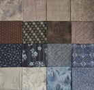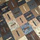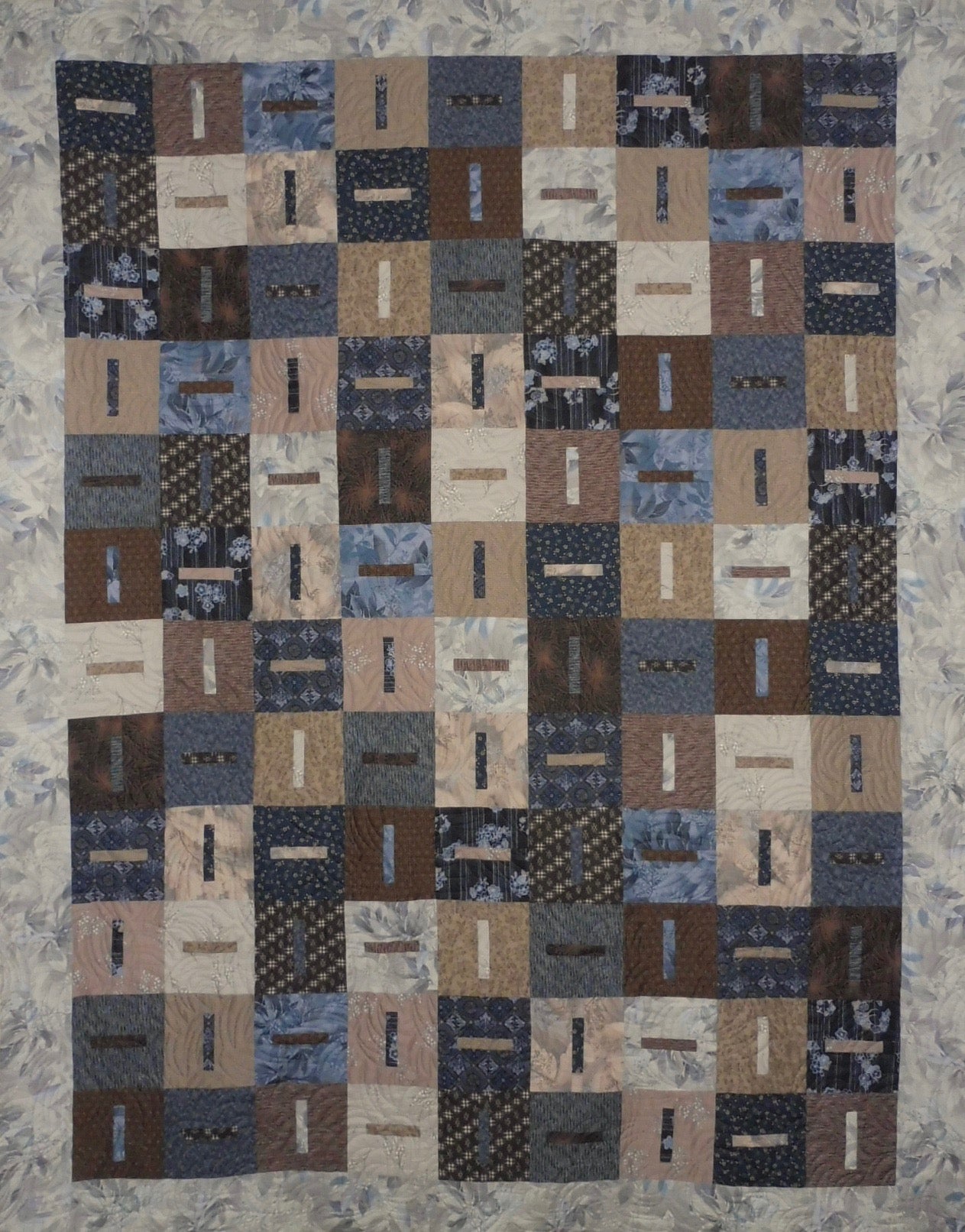 The popular quilt pattern called Feng Shui was created by designer Janine Burke of Designs by jb and my retired store sample was sold with permission. This version features Japanese quilting prints and textured dobby prints in a lovely palette of blue, brown, tan and taupe. It measures approximately 64" x 84," which is appropriate for a large throw. Patterns sold separately and custom orders for quilt kits or finished quilts in any size and colour combination are welcome.