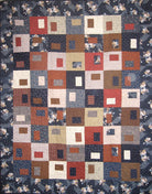 This quilt features pretty cotton fabrics imported from Japan. Prints include traditional motifs, such as dragonflies, flower blossoms and sashiko designs mixed with a popular French influenced Japanese series. Colors are dark blue, brown, rust and cream. The pattern is called Gems and designed by Janine Burke of Designs by jb.  My retired store sample was sold with permission. The quilt measures 51" x 63," which is appropriate for a wall hanging or small throw quilt.