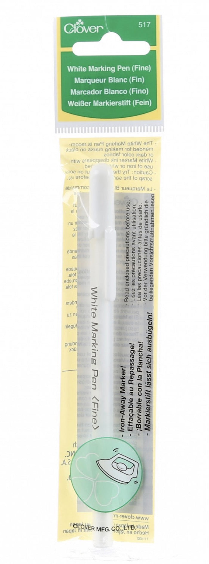 Made in Japan for Clover, this white marker is water soluble and irons away.