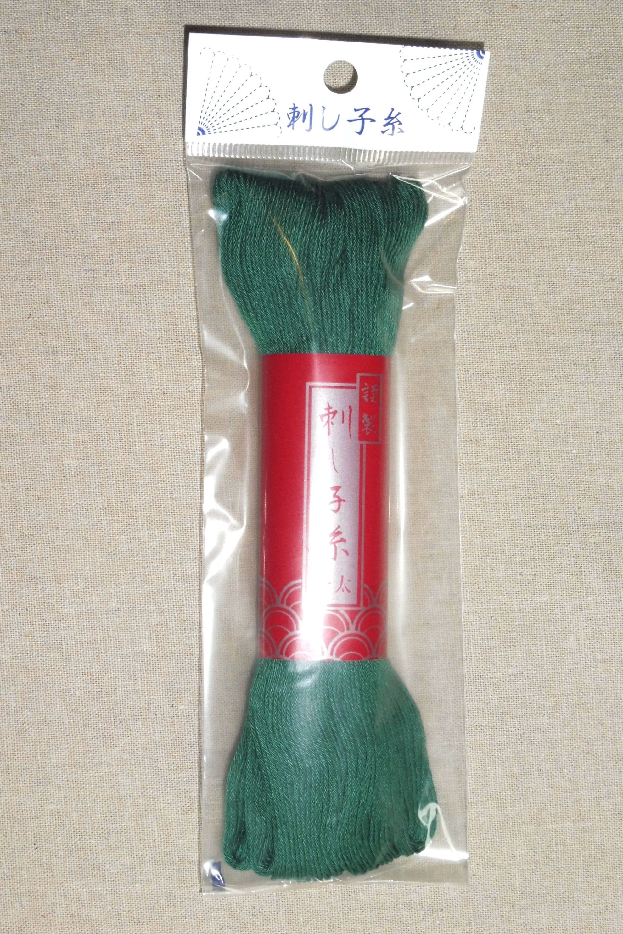 Imported from Japan, this is a 100 metre skein of thick cotton thread in dark green.