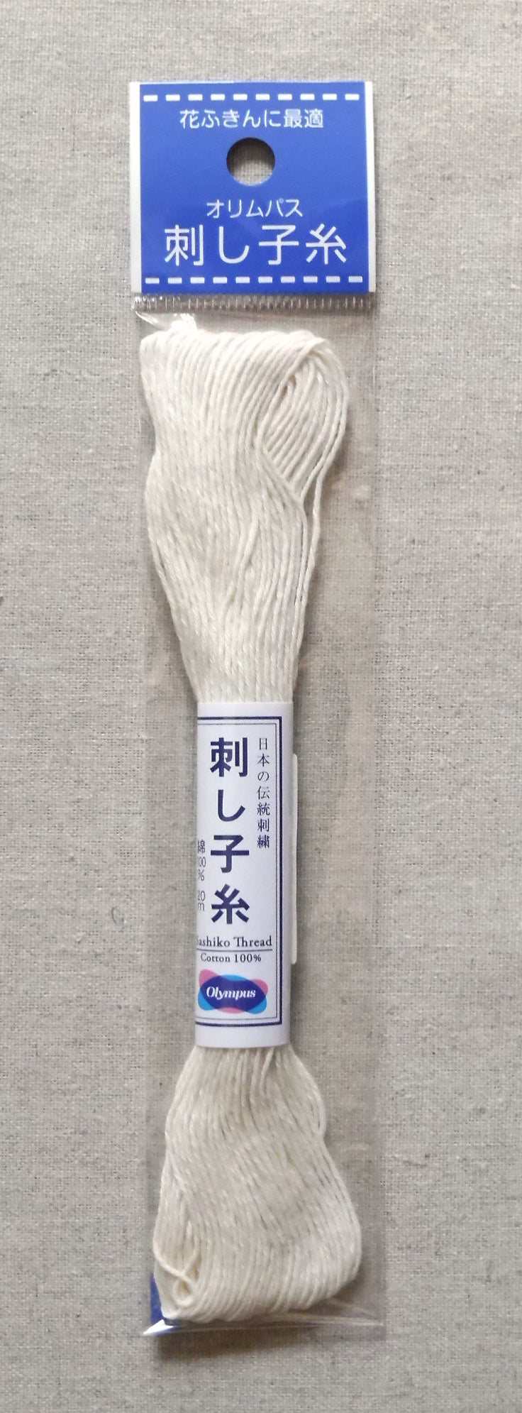 Imported from Olympus of Japan, this is a 20 metre skein of thick cotton thread in white.  You will need 15 to 20 metres of thread to complete one sashiko panel.  Please note that this is colour #2 and, due to the addition of light neutral in the bulk series, Kallisti Quilts has changed the colour name to align with the bulk skein #102.