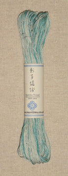 Imported from Mont Bleu of the UK, this is a 50 metre skein of medium weight, hand dyed cotton thread. The medium weight from Mont Bleu is similar to the standard thick Sashiko threads manufactured commercially. Please note that, due to the nature of hand dyeing, variations in skeins should be expected.