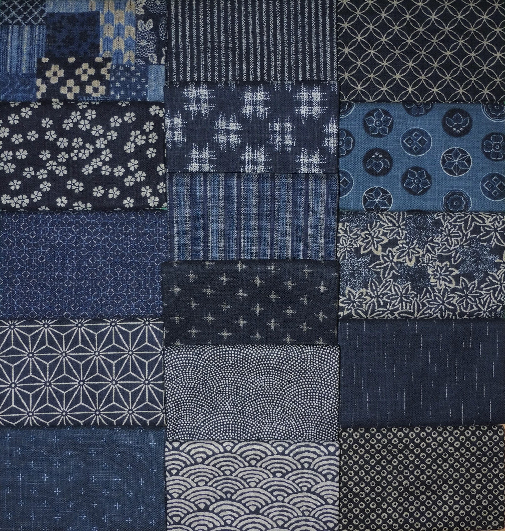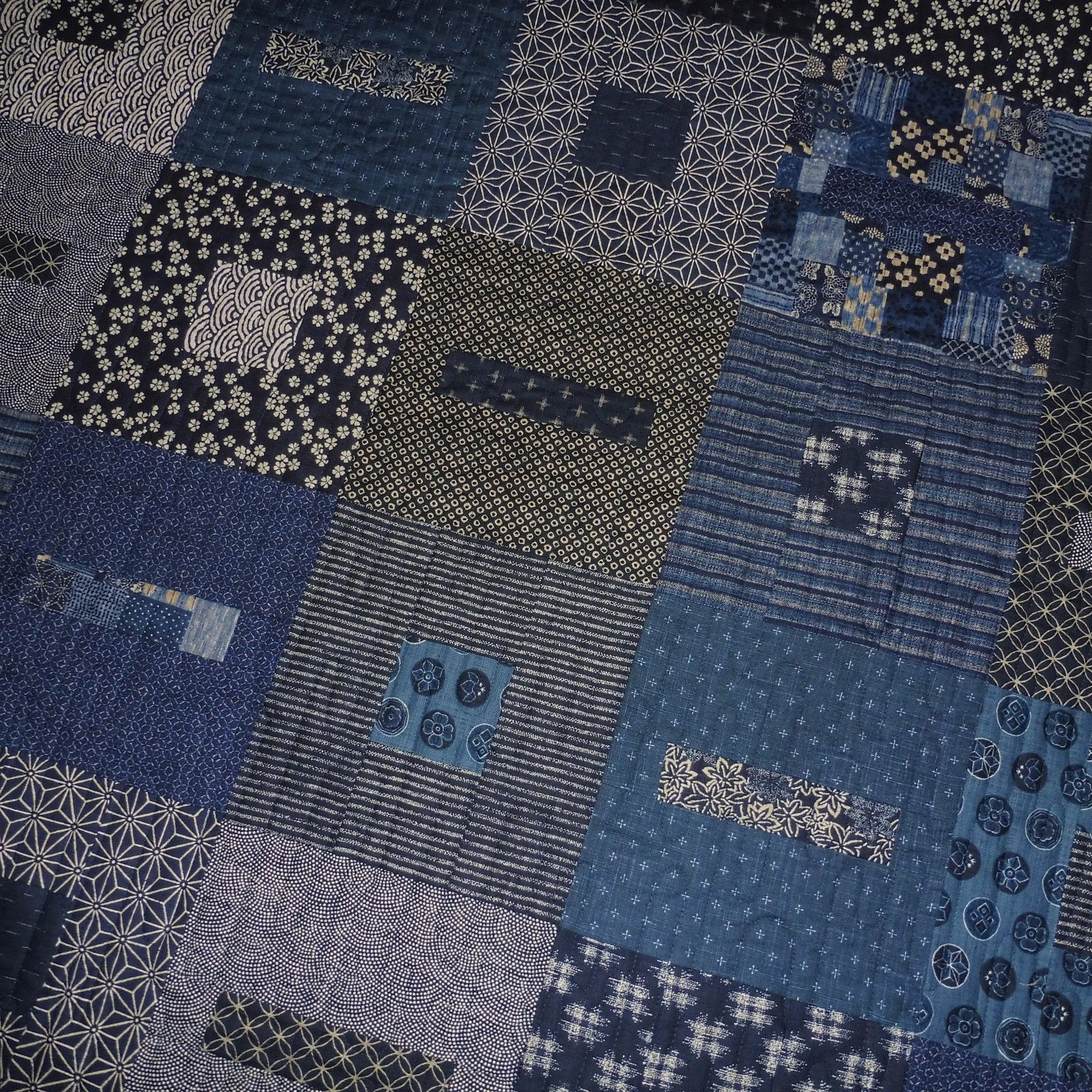 Kallisti's spring 2025 version of Boxed In features gorgeous textured dobby prints from Japan in traditional dark blue and beige. The pattern is designed by Upper Canada Quiltworks and sold separately. The quilt measures approximately 54" x 72" and is appropriate for a throw quilt. My retired shop sample was sold with permission.